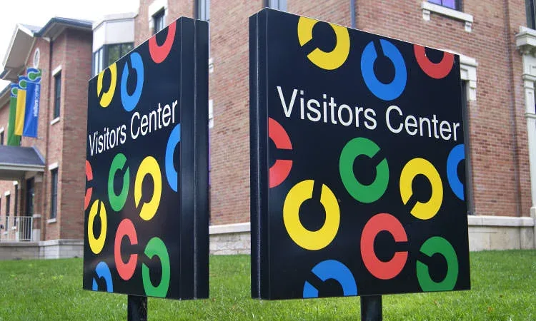 | Photo of Visitors Center from Franklin Street – the parking lot is to the left of this photo | Sign in at corner of Franklin and Fifth Street |